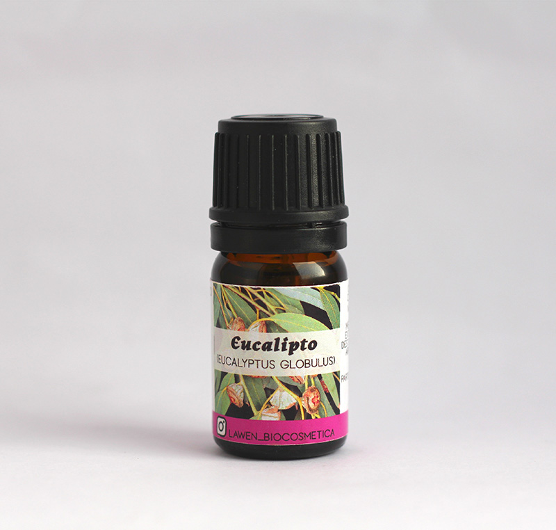 (Eucalipto globulus) Destilación por arrastre de vapor en acero inoxidable. Parte destilada: hojas y tallos. Lugar: costa de Valdivia. Propiedades: Expectorante, descongestionante, despeja las vías respiratorias, antiséptico, antibacteriano, antiinflamato
