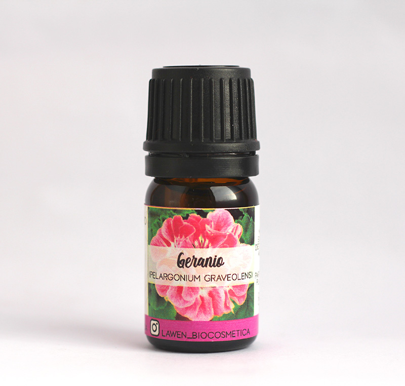 (Pelargonium graveolens) Parte destilada: Parte entera. Procedencia: Egioto. Quimiotipo: citronelol, geraniol. Propiedades: Antibacteriano, antifúngico potente, estimulante astringente cutáneo, estrógeno like, equilibra las emociones. Formato de 5 ml.
