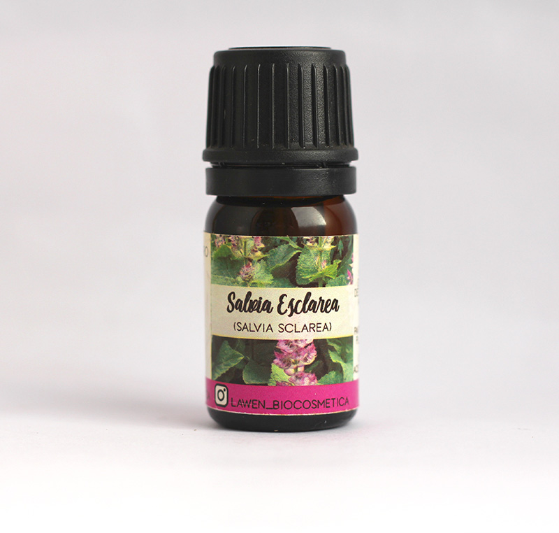 (Salvia sclarea) Parte destilada: Planta entera. Procedencia: Rusia. Quimiotipo: Acetato de linalilo. Propiedades: Relajante del sistema nervioso, calmante, antitranspirante, estrógeno like, blebotónico, afrodisíaco y antiespasmódico. Formato de 5 ml.